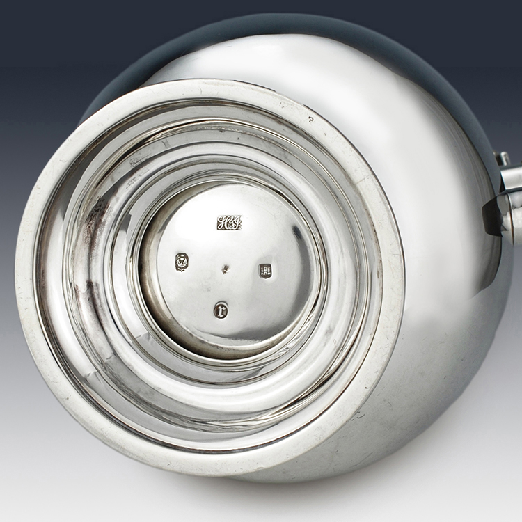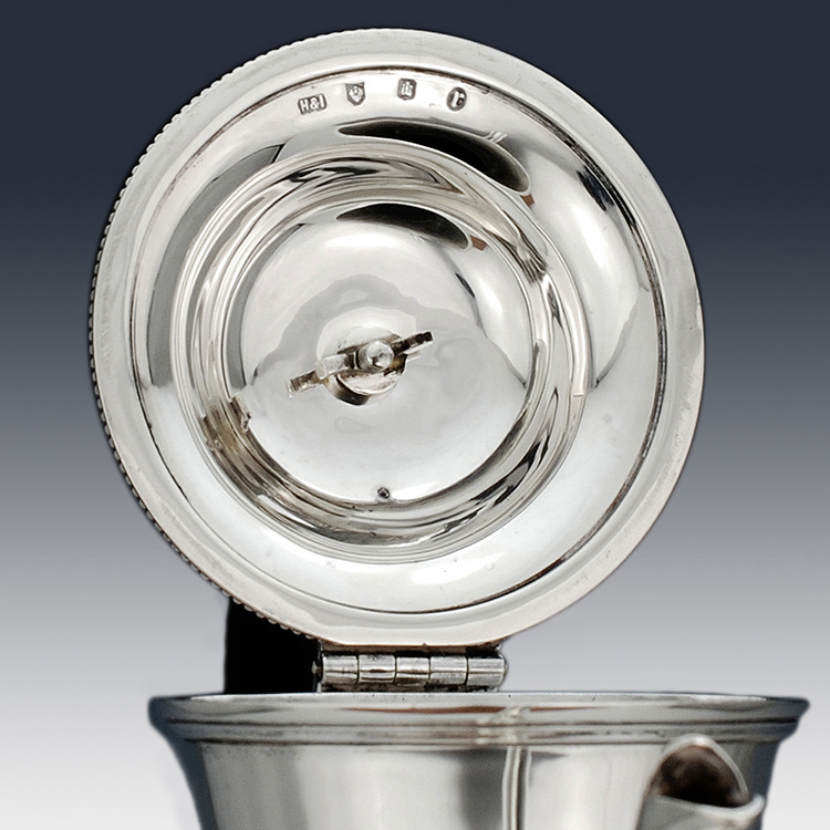 The gauge of this silver coffee pot is excellent with proportions perfectly designed and crafted. This antique sterling silver coffee pot is in superb condition, free from deep scratches and dents with fine surface marks representative of age. The lid is without play, the hinge in good condition, and the handle tight in ferrules with pins secure, the coffee pot sits flat and level. All assay marks clear and crisp with a full set of marks assayed to both inside lid and base.